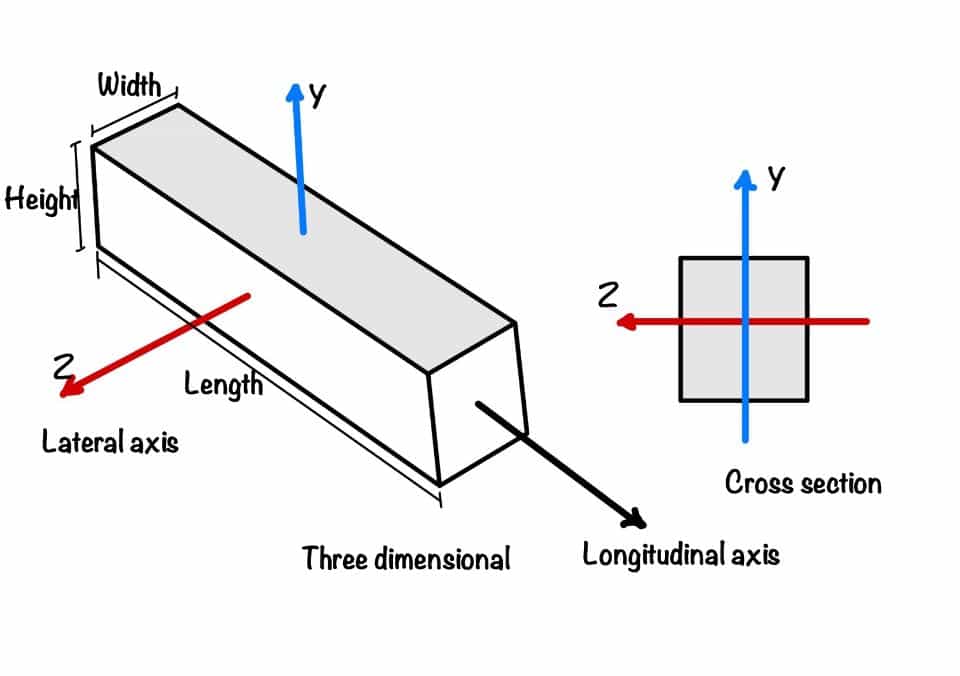 In structural engineering, we have well-defined cross sections and the members have a longitudinal axis and a lateral axis.