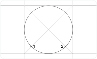 The foundation of the logomark begins with a circular grid that establishes the primary proportions.