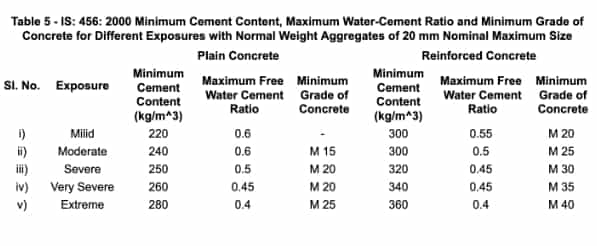 | Minimum cement content for mild expossure condition | 220 kg/m3 |