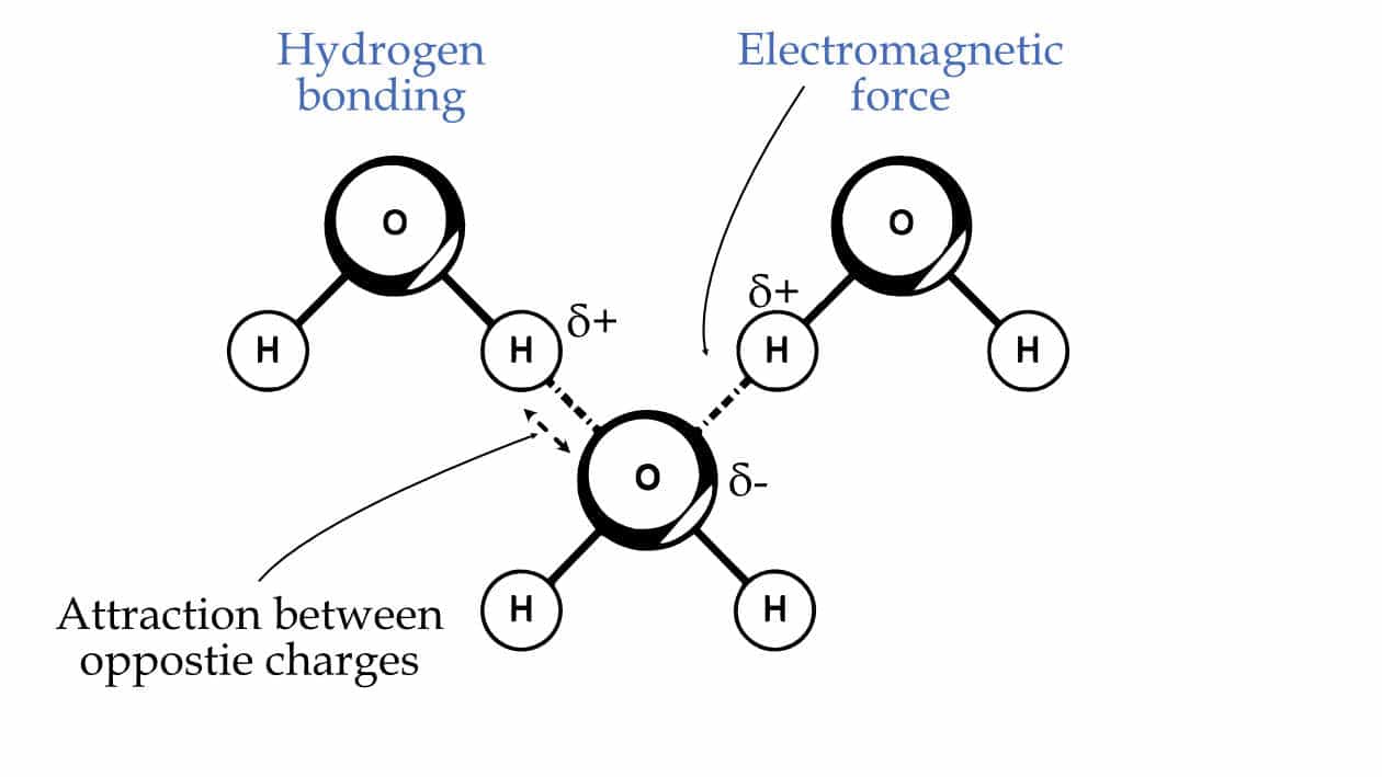 In hydrogen bonding, one molecule's partially negatively charged oxygen attracts the partially positively charged hydrogen of the same or different molecule. And the reason for that attraction is the pull between the oppositely charged particles. So, even hydrogen bonding is nothing but an electromagnetic interaction or force.