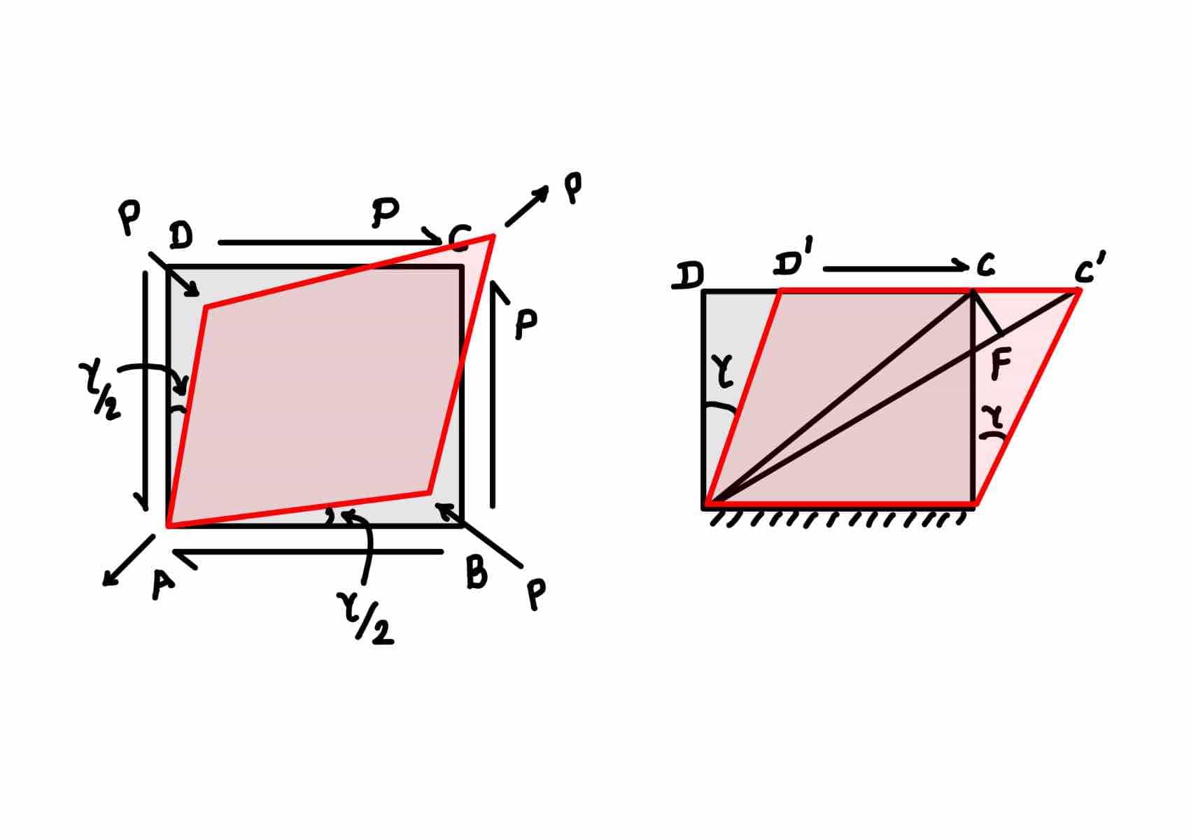 Where is the shear stress acting in the materia., and is the shear strain which we measure in the direction of shear stress application.