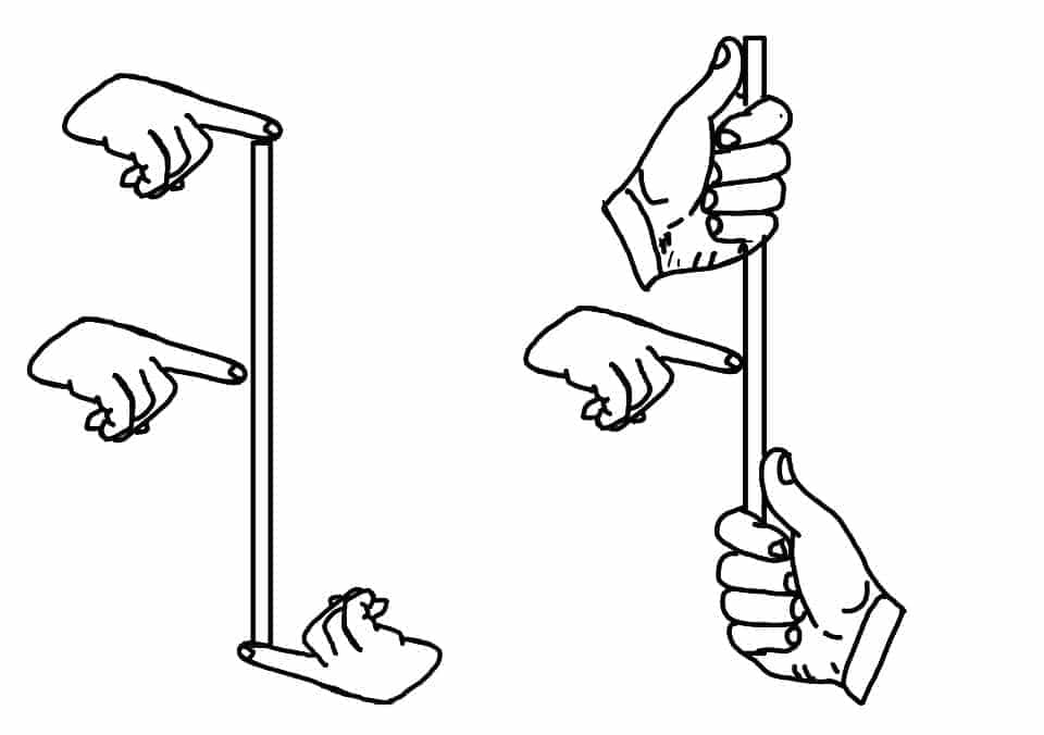 The column behavior changes with the end condition. To demonstrate this, pick one piece of wire or the scale. Assume this as your column. In the first case, hold the column from the fingertip, as shown in the figure. Now ask your friend to push the column from the lateral direction.