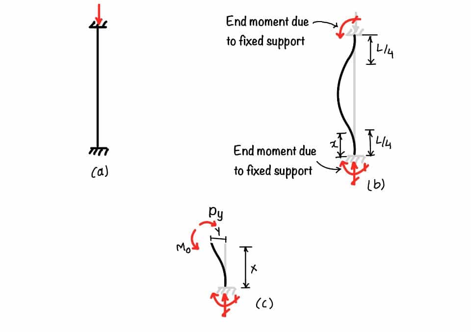 This change in the behavior of the column with the end condition also changes the critical load of the column. Therefore we will write the series of articles to address different end conditions like fixed-fixed, fixed-pin, fixed-free. And, in the present article, we will derive the critical load for the fixed-fixed end condition of the column.