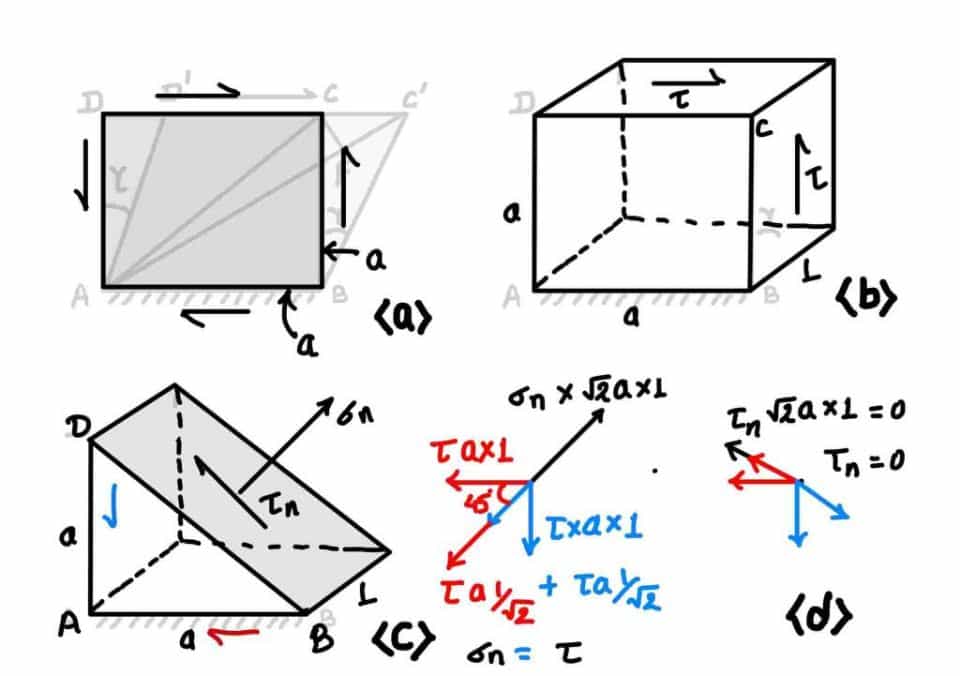 The modulus of rigidity is connected with the modulus of elasticity. As shown in the figure, you need to apply the shear in the block (ABCD). This shear will create deformation, and the distorted shape is (ABC'D').